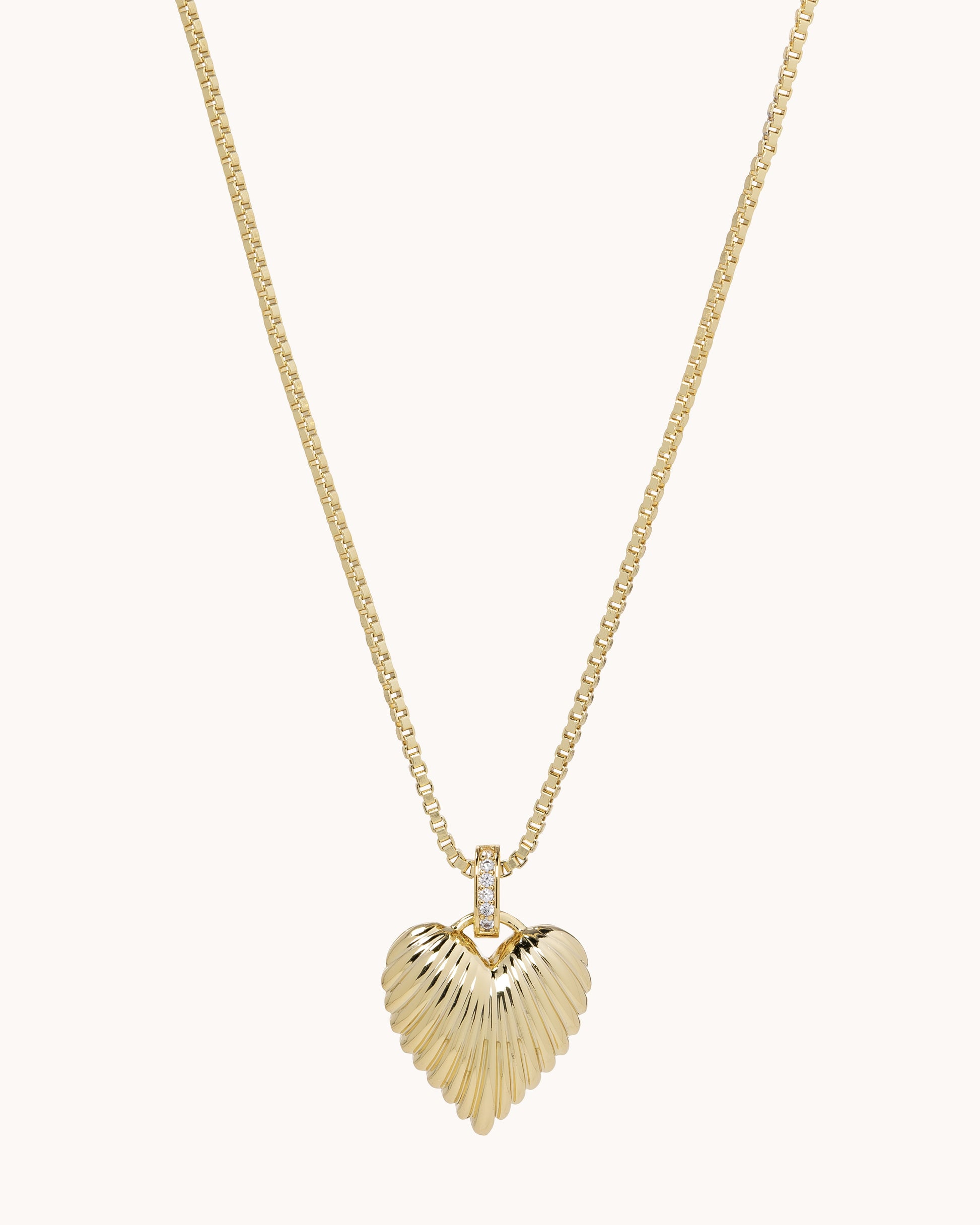 Show off your style with this stylish Demi-Fine necklace. Made of 14K plated gold, the design features a Ridged Puffy Heart Pendant - Gold.